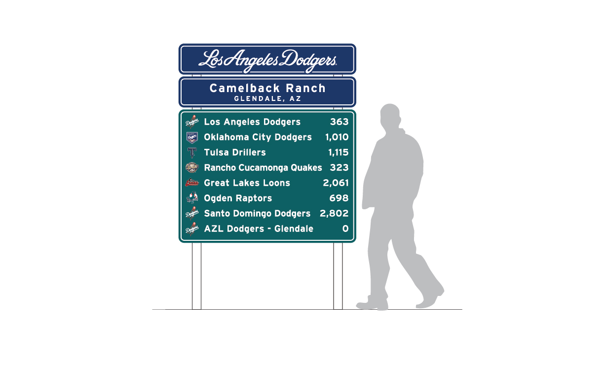 Camelback Ranch-Glendale will now feature signage located in the CF Courtyard that will include the names and distances from Glendale, Ariz., of each of the Dodgers’ minor league affiliate. The opposite side of the sign will include each of the White Sox minor league affiliates.